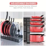The adjustable tiers allow you to customize the shelf heights to accommodate various cookware sizes, keeping your kitchen clutter-free and neatly arranged. Its sturdy construction ensures long-lasting use, making it an essential kitchen organization tool.