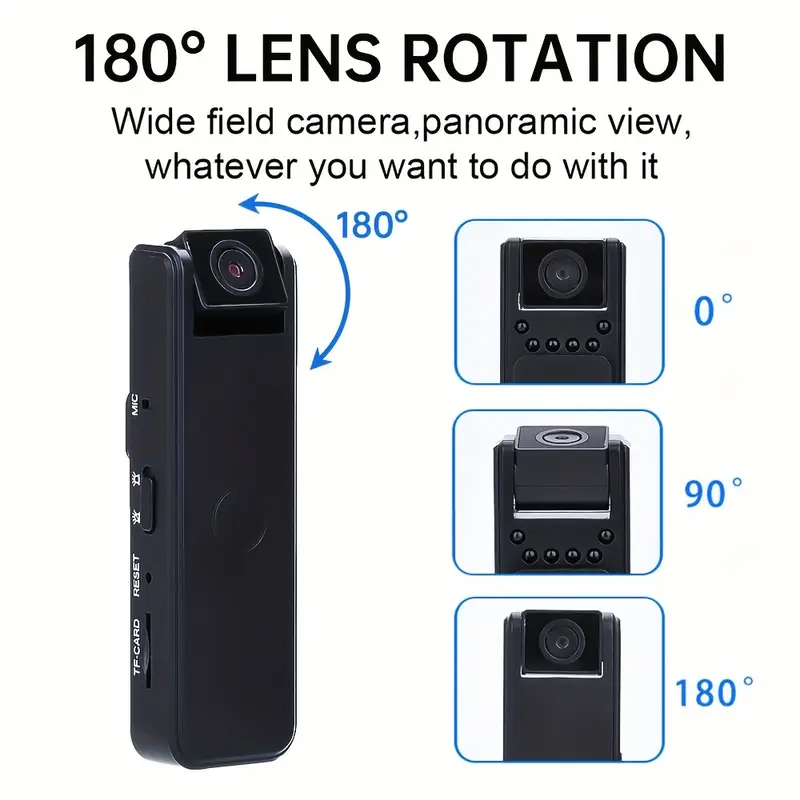 Mini 1080P HD Action Camera – Infrared Night Vision, 180° Rotation, Pocket Clip, USB/Battery Powered